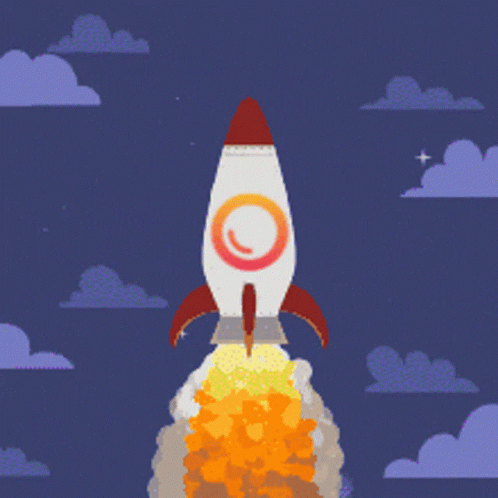 કન્ટેન્ટનું વર્ણન: a pixel art illustration of a rocket taking off into space