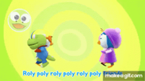 - કન્ટેન્ટનું વર્ણન: a group of cartoon characters standing next to each other with the words " roly poly roly poly roly poly " written on the bottom