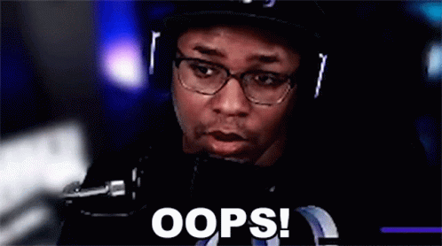Indholdsbeskrivelse: a man wearing headphones and glasses is sitting in front of a microphone and saying oops .