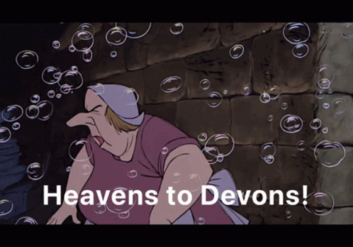 Inhaltsbeschreibung: a cartoon of a woman with the words heavens to devons
