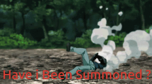 Inhaltsbeschreibung: a man is laying on the ground with the words have i been summoned in red