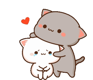 Inhaltsbeschreibung: two cartoon cats are hugging each other with a heart in the background .