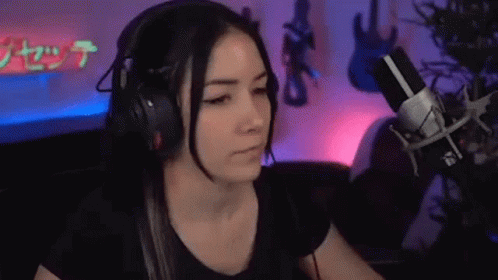 Inhaltsbeschreibung: a woman wearing headphones is sitting in front of a microphone in a room .