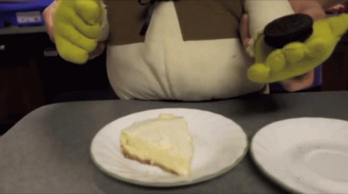 Inhaltsbeschreibung: shrek is holding an oreo cookie and a piece of cheesecake