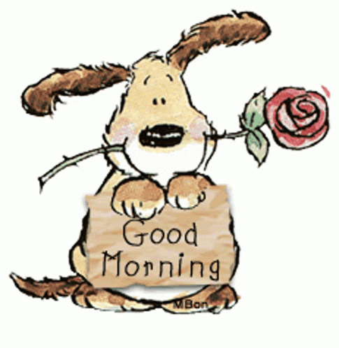 a cartoon drawing of a dog with sunglasses and the words good morning on it