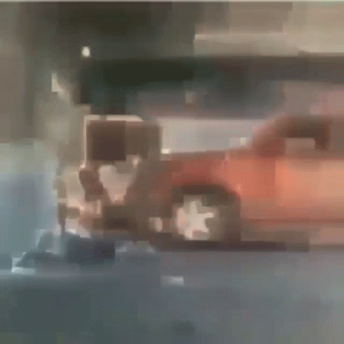 Inhaltsbeschreibung: a blurry picture of a white truck and an orange car