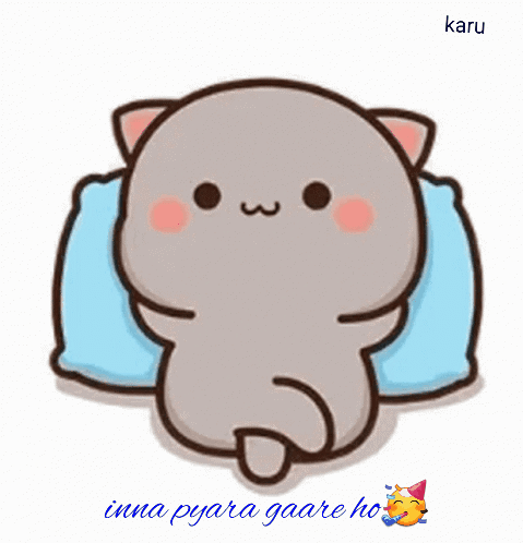 Content description: a cartoon of a cat laying on a blue pillow with the words " inna pyara gaare ho " below it