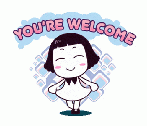 Content description: a cartoon of a girl with the words you 're welcome above her