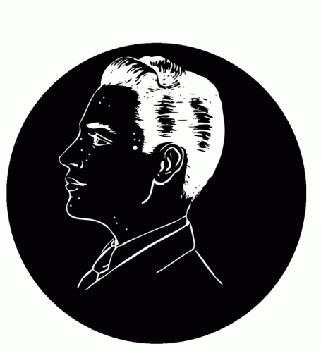 Content description: a black circle with a gold silhouette of a man and the words bioface thoppi
