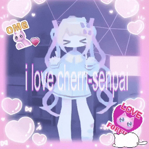 Content description: a picture of a girl with the words i love cherry senpai on it