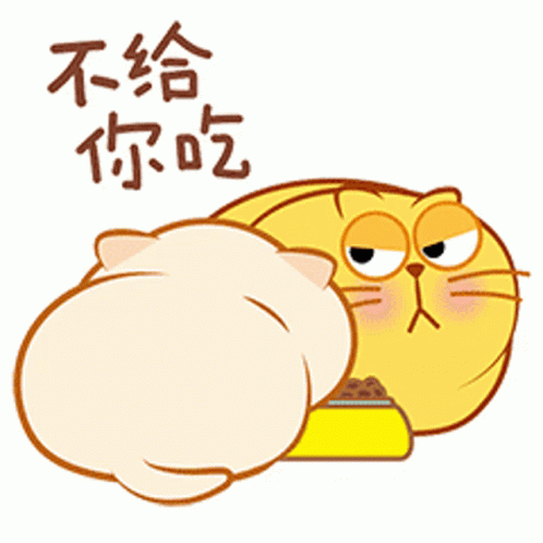 Content description: a cartoon cat is laying down next to a bowl of food with chinese writing on it