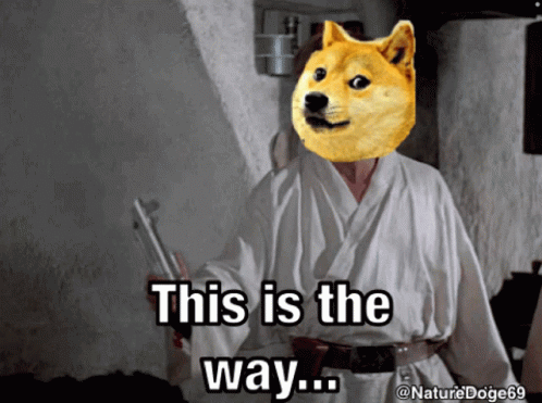 Content description: a picture of a doge holding a sword with the caption " this is the way "