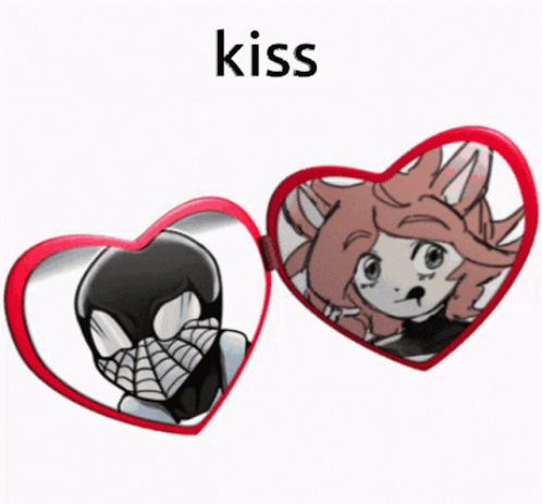 Content description: a pair of heart shaped mirrors with a spider man and a girl on them