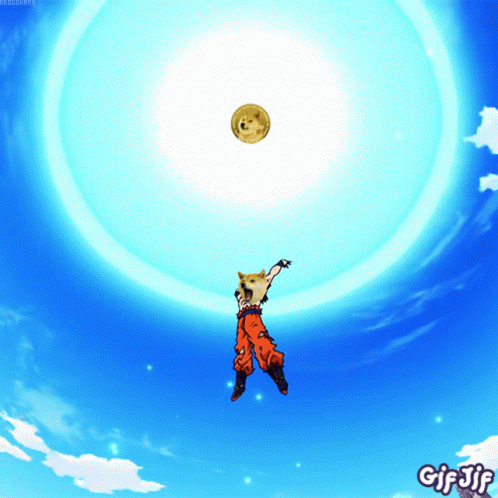 Content description: a gif of a doge being thrown in the air with the words gifjf below it