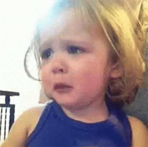 Περιγραφή περιεχομένου: a little girl is crying and making a funny face while wearing a blue tank top .