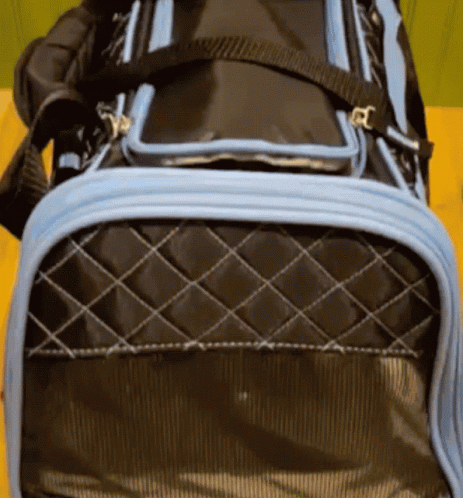 Descripción del contenido: a black and blue bag with a quilted pattern on it