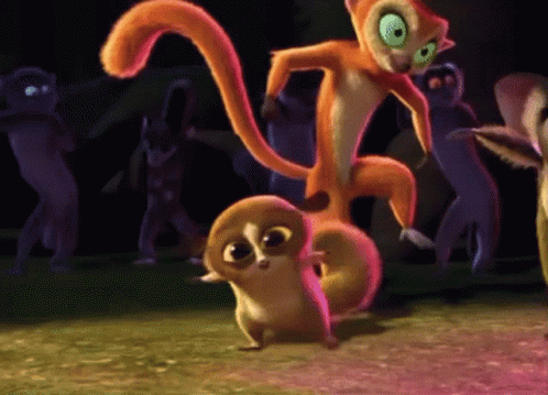 Descripción del contenido: a group of cartoon animals are dancing in the grass