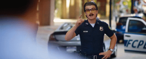 Descripción del contenido: a police officer stands in front of a police car with the letters fc on the door