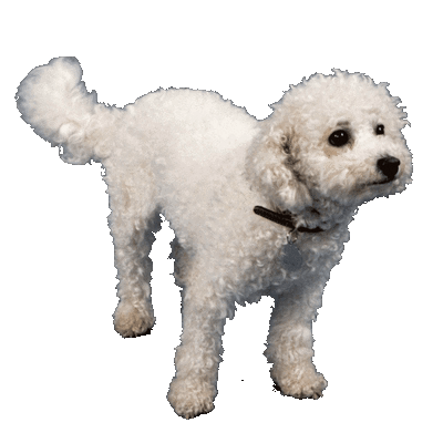 a cartoon drawing of a poodle with a black tail