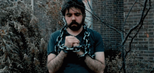 a man with chains around his arms is standing in front of a wall that says viralhog on it