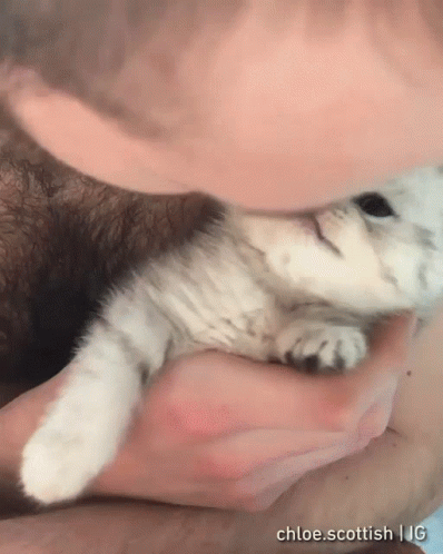 Descripción del contenido: a close up of a person holding a kitten with the caption chloe scottish