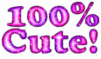 Descripción del contenido: the words 100 % cute are written in purple letters