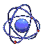 Descripción del contenido: a pixel art illustration of an atom with a blue sphere in the middle .