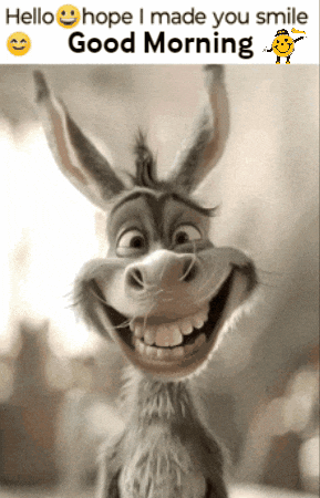 Descripción del contenido: a donkey is smiling with the words " hello hope i made you smile good morning " above it