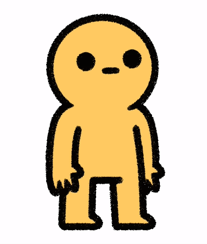 Descripción del contenido: a yellow cartoon character is shrugging his shoulders and has black eyes