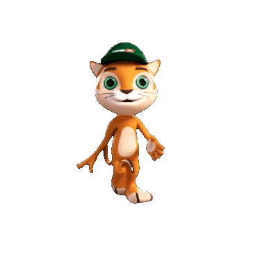 a cartoon cat wearing a green hat that says ' puma ' on it