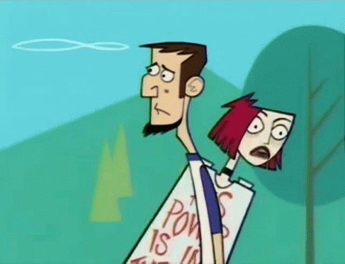 Descripción del contenido: a man and a woman are standing next to each other in a cartoon . the man is wearing a shirt that says power