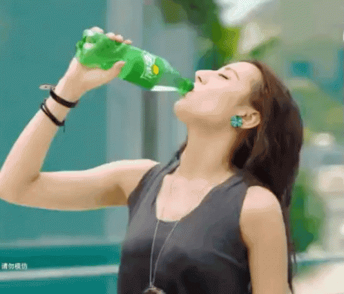 Descripción del contenido: a woman is drinking from a green sprite bottle .