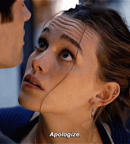 Descripción del contenido: a close up of a woman 's face with the words apologize written below her