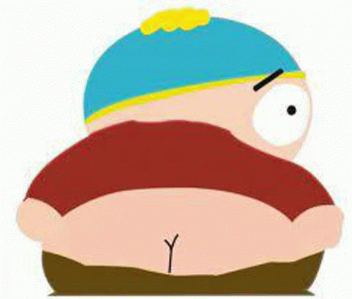 Descripción del contenido: a cartoon character from south park with a large belly and a tattoo on his butt .