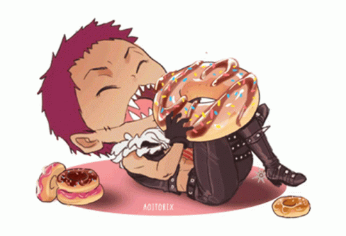 Descripción del contenido: a cartoon drawing of a person eating a donut with the name aoitorix below it