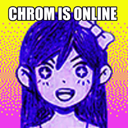 Descripción del contenido: a picture of a girl with a bow in her hair and the words chrom is online below her