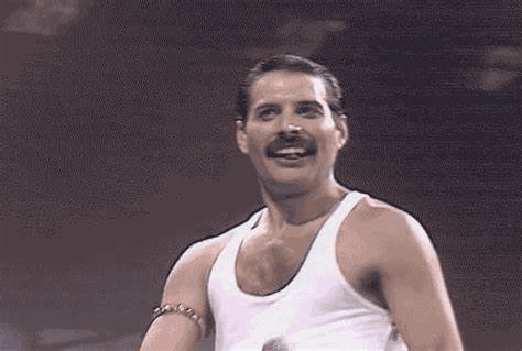 Descripción del contenido: a man with a mustache is wearing a white tank top and smiling while holding a microphone .