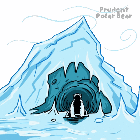 a drawing of a polar bear in front of an iceberg with the words " prudent polar bear " on the bottom
