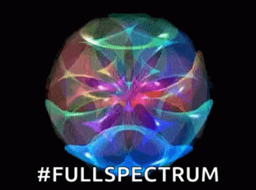 Descripción del contenido: a rainbow colored sphere with the words `` full spectrum '' written on it .