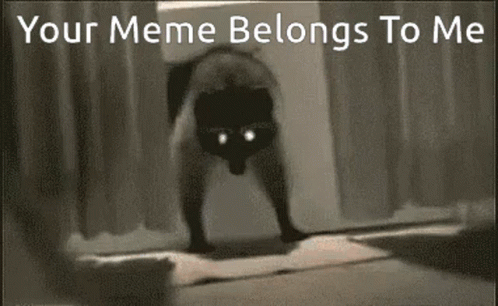 a black and white photo of a person standing in a room with the words `` your meme belongs to me '' .