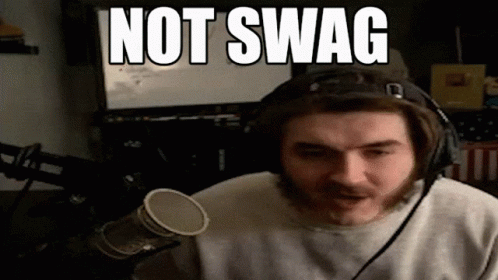 Descripción del contenido: a man wearing headphones says not swag in front of a computer screen