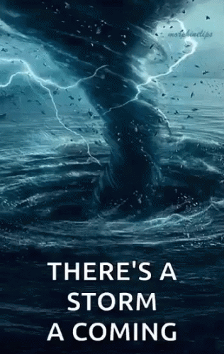 Descripción del contenido: a picture of a tornado in the ocean with the words there 's a storm a coming