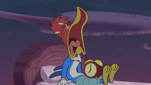Descripción del contenido: woody woodpecker is laying in bed with an alarm clock
