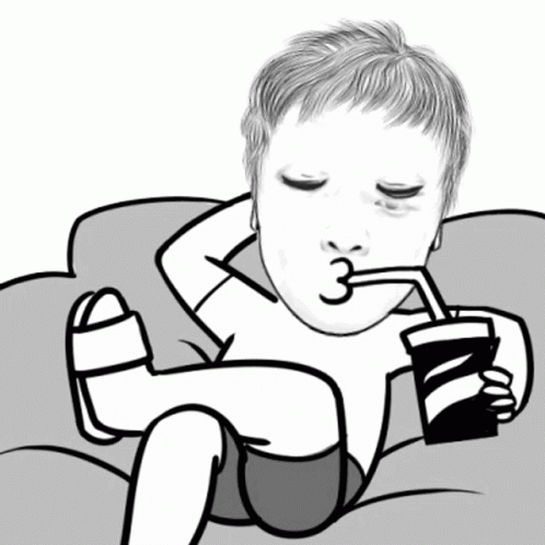Descripción del contenido: a black and white drawing of a boy drinking through a straw with the words cool cool cool written above him