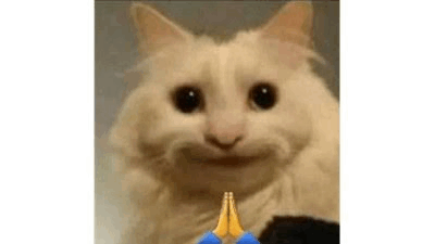Descripción del contenido: a close up of a cat making a funny face with its paws folded in prayer .