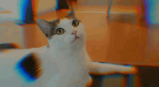 Descripción del contenido: a blurry picture of a cat with a rainbow background