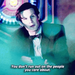 Descripción del contenido: a man in a suit and bow tie says " you don t run out on the people you care about "