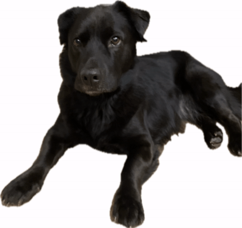 Descripción del contenido: a black dog with a white background is laying down