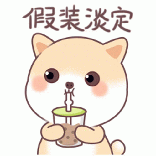 Descripción del contenido: a cartoon dog drinking from a cup with a straw in it
