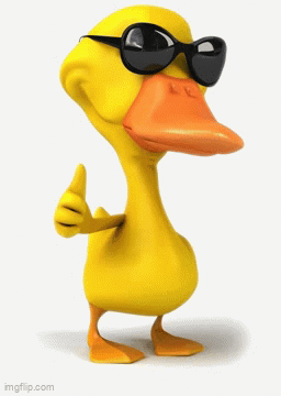 Descripción del contenido: a yellow cartoon duck wearing sunglasses is giving a thumbs up